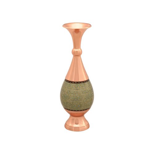 This copper and Khatam vase blends metal craftsmanship with fine Khatam inlay, offering a refined decorative presence. Its protective four-layer polyester finish ensures durability and longevity, making it suitable for both traditional and contemporary interiors.